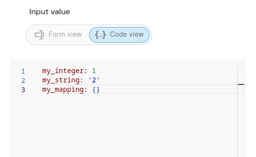 It's also possible to specify the input using the "Run with options" button, here a valid YAML document can be supplied. Please be aware, that the top-level element of the document must be a mapping.